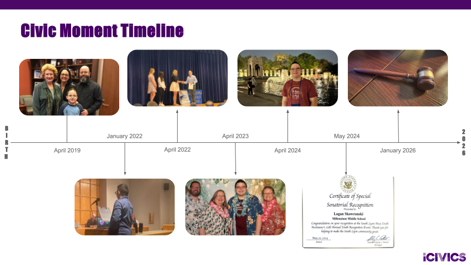 Throughout my middle school career, I led and organized a club called Tech Helpers, which, as the name suggests, was available to help students and staff with their technology. In my 6th grade year, the club was very small and people across the school and district had very little knowledge of its existance; therefore, I volunteered to present in front of the school board about what Tech Helpers was and why it was important. I included this event in my Civic Moment Timeline because it provided a valuable introduction to my attendance and interest in public speaking and attending public meetings, and I am so grateful that I was able to have that experience.